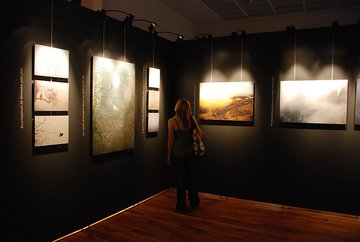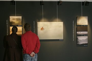 Photographies singulières, ambiances rares, crépusculaires. Lumières du matin ou lumières du soir. Une même esthétique parcourt l’exposition. Un Cerf qui surgit derrière un bosquet, un Harfang qui se tapit dans la neige, un Loup d’Abyssinie qui part en chasse… Instants de vie, d’ici ou d’ailleurs, l’animal est saisi dans son environnement. Les paysages lorrains se trouvent sublimés par ceux du Grand Nord et d’Afrique et tous les repères sont effacés. De crépuscule en crépuscule, des forêts vosgiennes à la toundra norvégienne, des neiges nordiques aux steppes africaines, il n’y a qu’un pas, une même démarche, un même crépuscule.